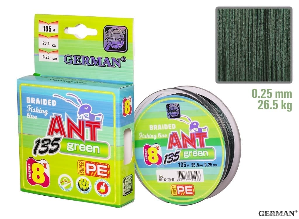 Длина: 135м Сечение: 0.25мм Нагрузка: 26.5кг Цвет: зеленый