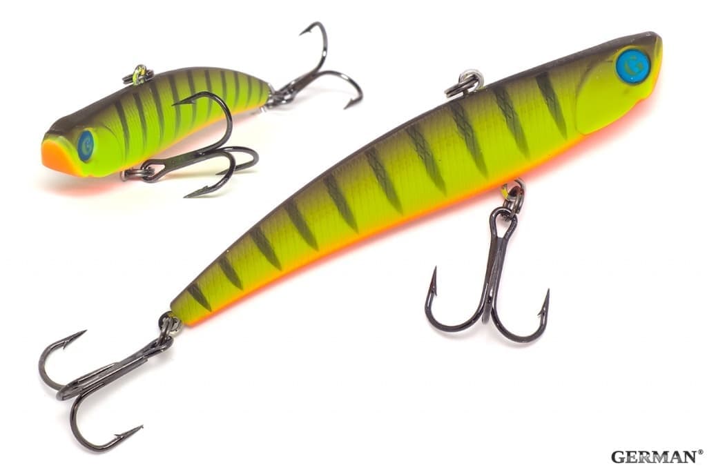 Тип: Раттлин. «Bay Vibe» — отличный воблер из семейства VIB (vibrations). Компанией GERMAN предлагается три разных размера и соответственно веса данной приманки. Её прогонистая форма и большой удельный вес позволяют легко ловить в заброс. При таком типе ловли этот воблер очень эффективен и уловист. Но многие рыболовы обратили внимание что подобный класс приманок прекрасно подходит и для ловли в отвес — как со льда, так и с лодки в период «жидкой воды». При ловле зимой, «Bay Vibe» станет отличной альтернативой балансирам. Ведь его движения при проводке порой гораздо интереснее стандартных покачиваний и планирования балансиров. Высокочастотные вибрации при подбрасывании и плавные покачивания отлично привлекают потенциальный улов к этому VIB-у. Что немаловажно, данный раттлин морозоустойчив и не меняет своих свойств зимой, показывая отличные результаты как в тёплое, так и в холодное время года.