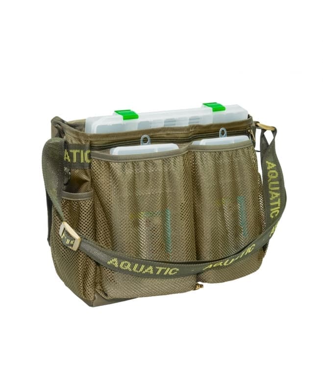 Сумка изготавливается из непромокаемых нейлоновых материалов и комплектуется 3 коробками Fisherbox. По периметру сумки имеется 4 кармана из сетки, а спереди и сзади 2 кармана на молниях во всю ширину сумки. Сверху находится карман на молнии, а так же светоотражающая отделка, позволяющая с помощью фонаря обнаружить сумку в темное время суток.